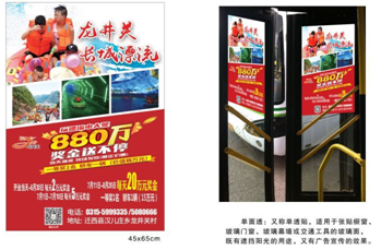 單面透車(chē)貼是發(fā)布于公交車(chē)內(nèi)下車(chē)門(mén)處,位置巧妙,乘客下車(chē)想不留意都很難。廣告效果不言而喻。