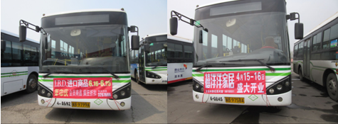 車(chē)前條幅是以橫幅廣告的形式懸掛于公交車(chē)車(chē)頭,伴隨著公交車(chē)這一載體每天穿梭于市區(qū)的大街小巷。